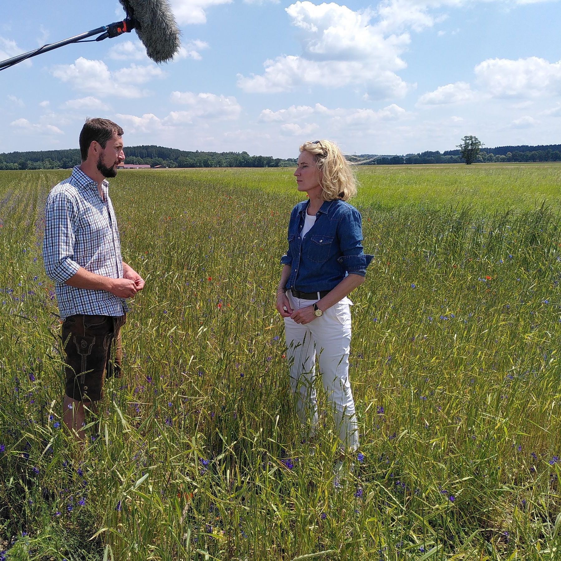 Ein kleines Highlight war der Drehtag für einen Dokumentarfilm, der von der Schauspielerin Maria Furtwängler angeregt worden ist und das Insektensterben und Maßnahmen dagegen zum Thema hat. Ein Beispiel wird das Patenschaftsprojekt der Familie Koböck sein. Für den Film wurde Roland Koböck zu seinem Engagement für die Artenvielfalt im blühenden Wildkrautacker von Maria Furtwängler interviewt.